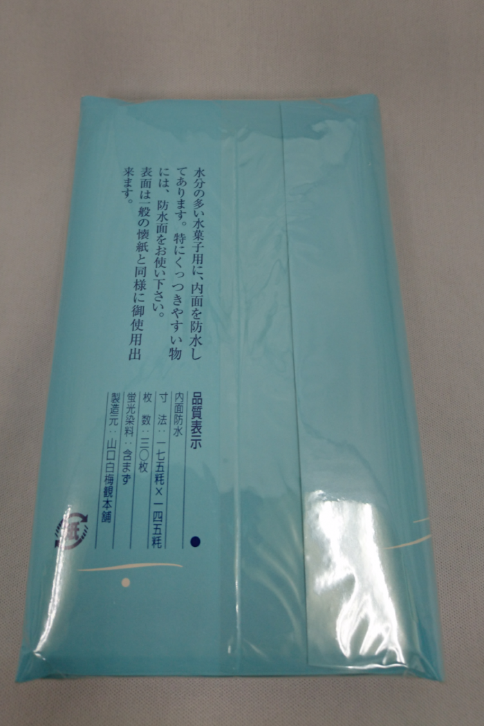 お茶会・お稽古に最適! 内側に防水加工をしていますので、水菓子に最適な懐紙です。また水分の多い生菓子や懐紙とつきやすいお菓子にも重宝します。